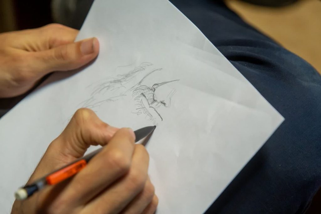 سپس در روز دوم با هدایت اساتید کارگاه آقای حسن علی پور در بخش پوستر، آقای سید محمد جواد طاهری کارتون و کاریکاتور و خانم لیلا تیموری نژاد در بخش تصویرسازی، هنرمندان به صورت گروهی اقدام به ایده پردازی و خلق اثر کردند. خروجی آثار این کارگاه به زودی در همین وب گاه منتشر خواهد شد. در ادامه تصاویری از فعالیت هنرمندان در این روز را مشاهده می کنید.